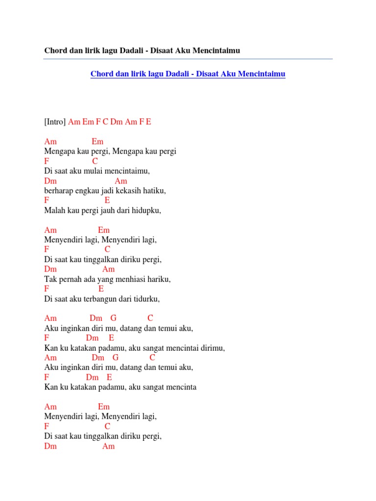 Chord Dan Lirik Lagu Dadali Disaat Aku Mencintaimu Pdf